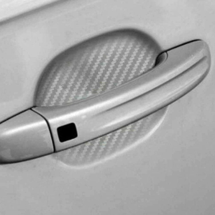Set 4 bucati protectie zgarieturi manere usa din autocolant carbon 3D Argintiu