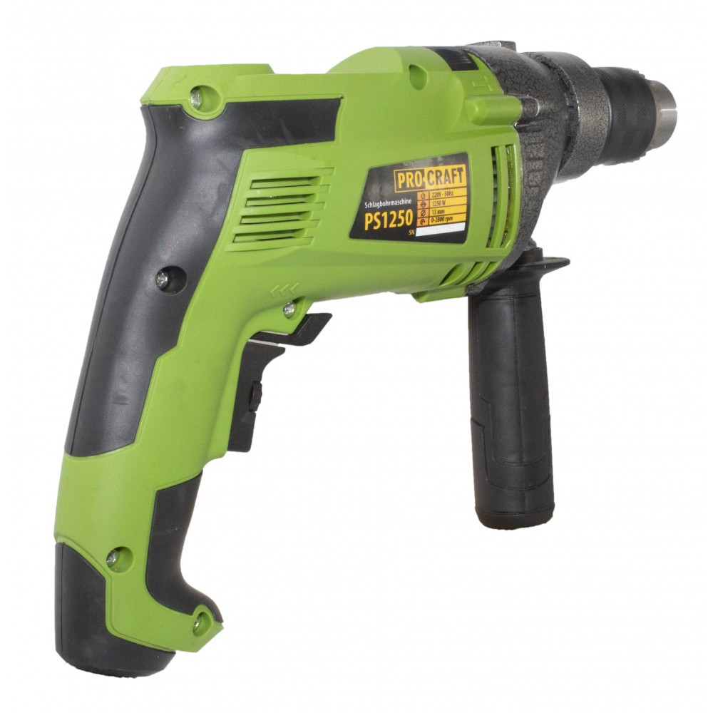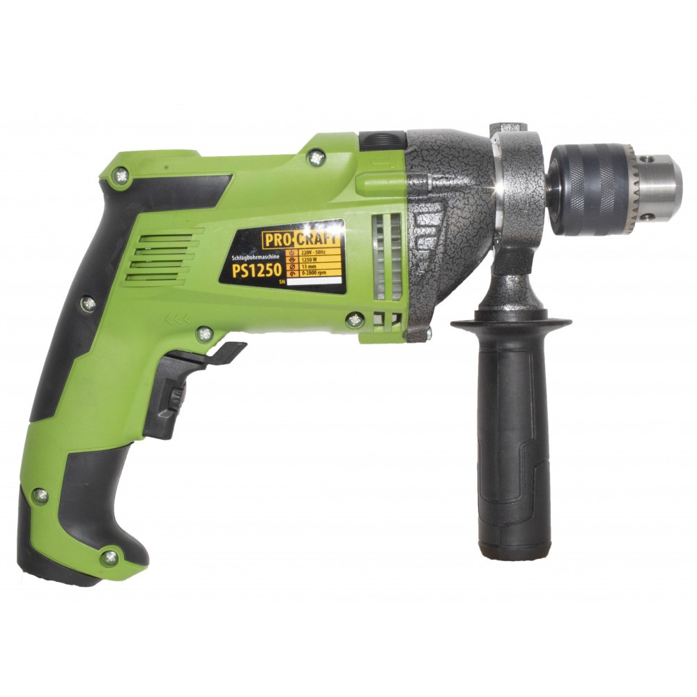 Bormasina Procraft PS1250, scula elactrica a producatorului Procraft folosita de catre gospodari si muncitori in atelierele proprii. Prezentam aici o unealta semiprofesionala, destinata uzului personal cu toate caracteristicile tehnice necesare unui astfel de produs. Este facuta ca sa dea randamentul optim la gaurirea lemnului, metalului si betonului si la demolarea stratului de beton cu ajutorul functiei de percutare. Mandrina cu trei bacuri, manuala, cu cheie se deschide pana la 13mm. Pentru o rezistenta mai buna si o stabilitate ridicata pentru mecanizmul de rotire/percutie, partea din fata a bormasinei este acoperita cu perete metalic din compozit de aluminiu. Pe suprafata acestuia poti monta si manerul mobil care poate fi pozitionat in orice pozitie doresti. Te va ajuta foarte mult in momentul lucrului in regim de percutie. Plus ca este acoperit cu strat de plastic anti-alunecare iar mecanizmul de fixare este metalic, prin urmare mai rezistent. Bormasina Procraft PS1250 este fabricata dupa un model originar german revizuit si redirectionat catre segmentul hobby si semiprofesional de amatori de scule. Are un design placut si o greutate acceptabila pentru o astfel de unealta. Recomandam persoanelor tip DIY, pentru uzul personal, care pot aprecia o scula indeajuns de mult incat sa nu o imprumute vecinului.