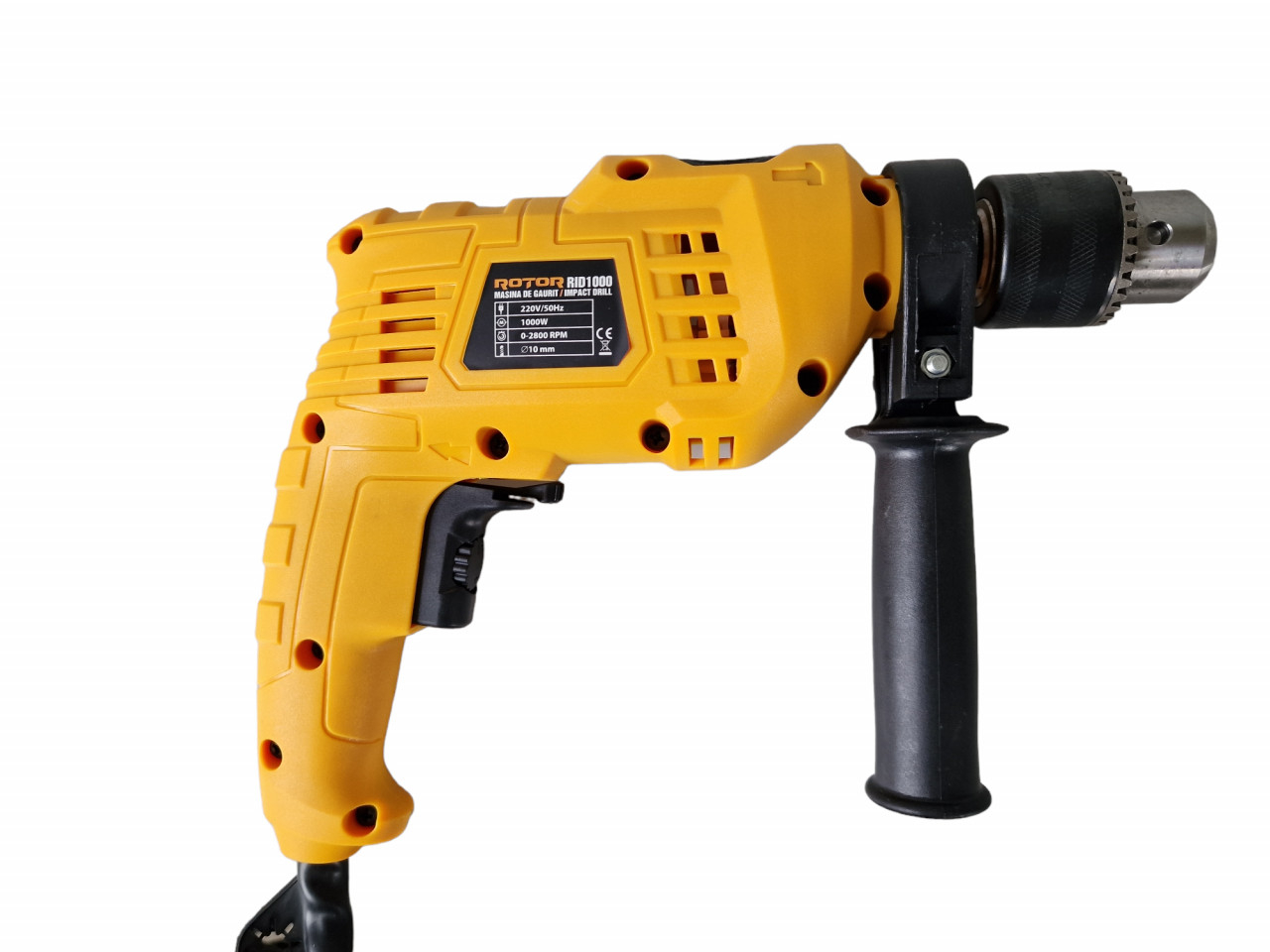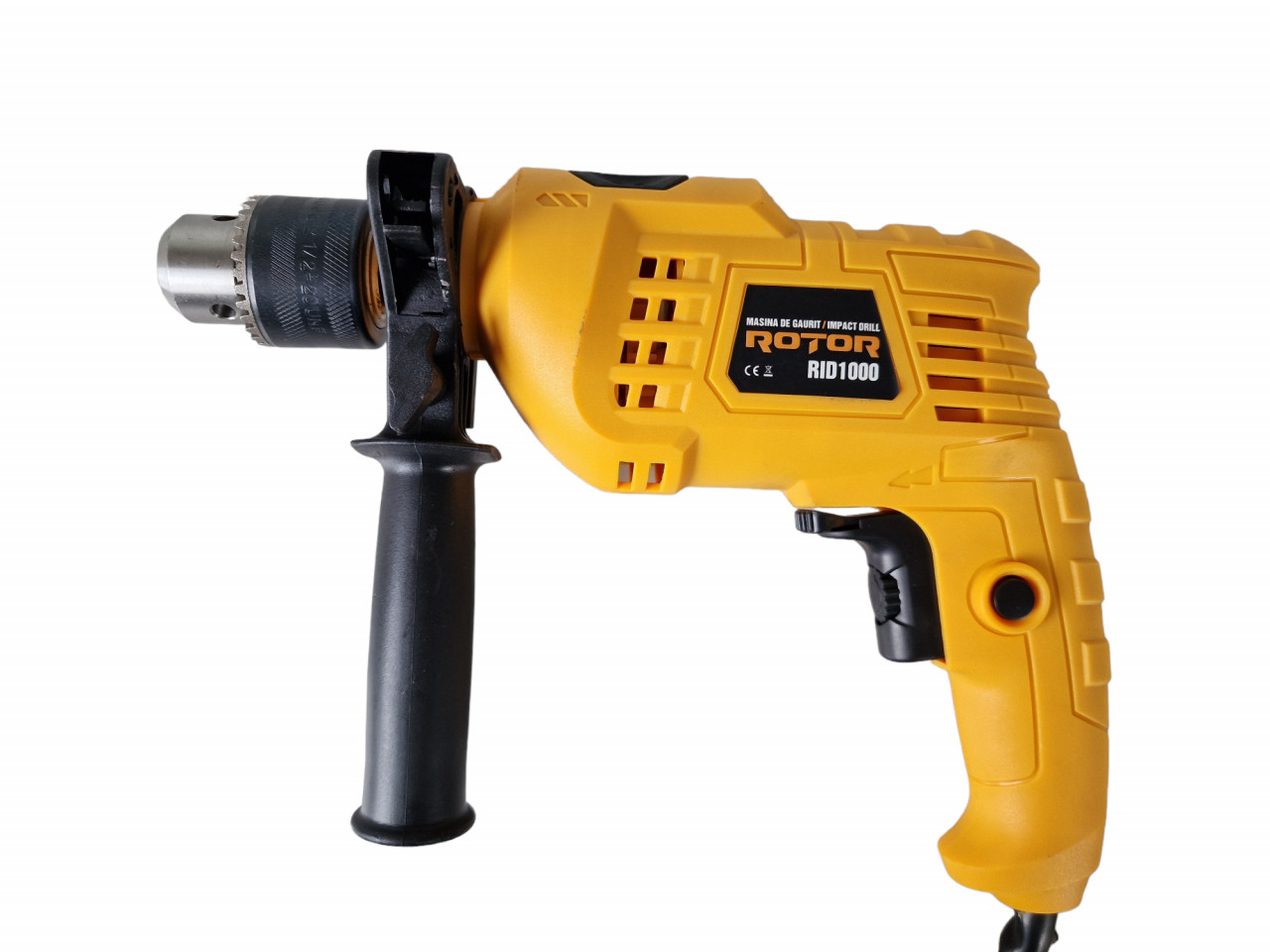 Bormasina ROTOR RID1000 este o unealta puternica si fiabila, alimentata la retea cu tensiunea standard de 220V. Cu o putere de 1000W, poate efectua cu usurinta lucrari de gaurire si insurubare, fiind ideala pentru proiecte de constructie si bricolaj.Viteza de rotatie de 2800 rot/min permite utilizatorului sa lucreze cu precizie si eficienta, indiferent de tipul de material cu care lucreaza. De asemenea, aceasta bormasina vine cu un cablu lung de aproximativ 2 metri, oferind o mobilitate sporita si libertate de miscare in jurul spatiului de lucru. Astfel, utilizatorul poate accesa cu usurinta zonele greu accesibile si poate lucra confortabil, fara a fi restrictionat de cablul de alimentare.Bormasina ROTOR RID1000 este dotata cu un design ergonomic, cu o prindere confortabila si sigura, oferind o manevrabilitate mai usoara si o mai mare precizie in utilizare. De asemenea, este usor de utilizat si potrivita atat pentru incepatori, cat si pentru utilizatorii experimentati.Aceasta bormasina este fabricata din materiale de calitate superioara, rezistente si durabile, asigurand o utilizare indelungata si fara probleme. De asemenea, designul compact si robust asigura o stocare usoara si sigura a bormasinii, indiferent de spatiul de depozitare disponibil.In concluzie, bormasina ROTOR RID1000 este o alegere excelenta pentru proiecte de constructie si bricolaj, oferind putere, precizie si fiabilitate intr-un pachet compact si usor de utilizat. Fiind alimentata la retea, utilizatorii pot lucra fara a se preocupa de descarcarea bateriei si pot obtine rezultate excelente intr-un timp mai scurt.