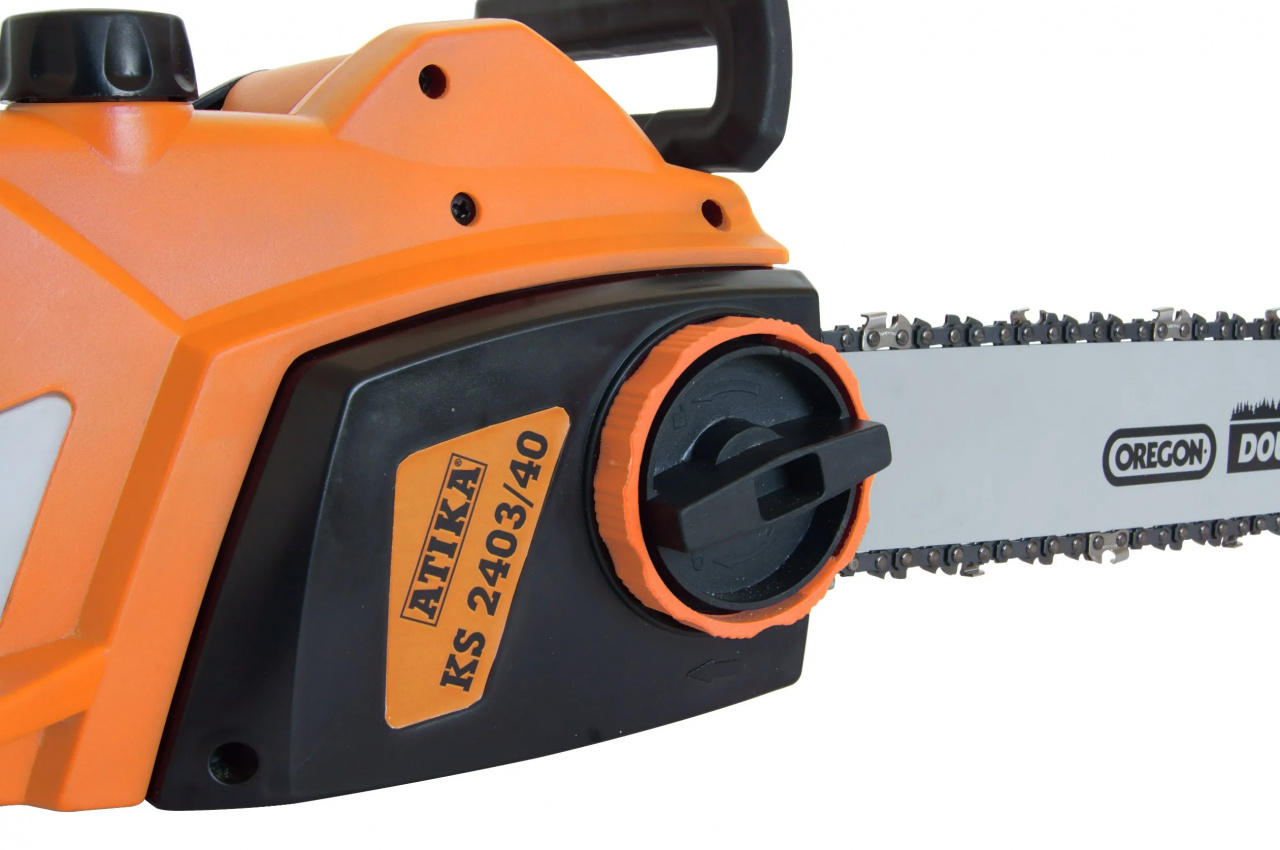 Ergonomia și siguranța sunt aspecte esențiale ale designului drujbei ATIKA KS2403/40. Mânerul este conceput pentru a oferi o prindere sigură și confortabilă, reducând riscul de alunecare în timpul utilizării. În plus, drujba este echipată cu un sistem de frânare rapidă, care oprește imediat lanțul atunci când utilizatorul eliberează butonul de activare, oferind un nivel suplimentar de siguranță.