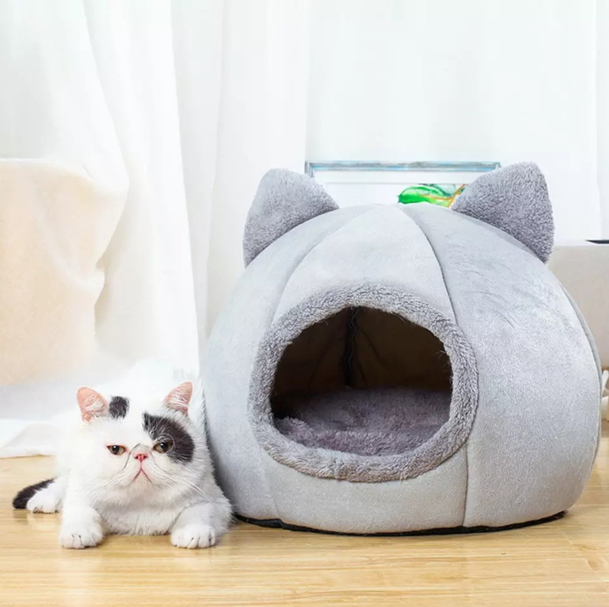 Un pat confortabil si estetic pentru animalul tau. Este foarte moale și potrivit pentru animalele de companie. Design unic în formă de cabină închisă cu urechi de pisică. Pereții groși și fundul din material antiderapant asigură confort și siguranță animalelor noastre. Bârlogul a fost umplut cu spumă moale și deformabilă. Strat inferior confortabil, moale.