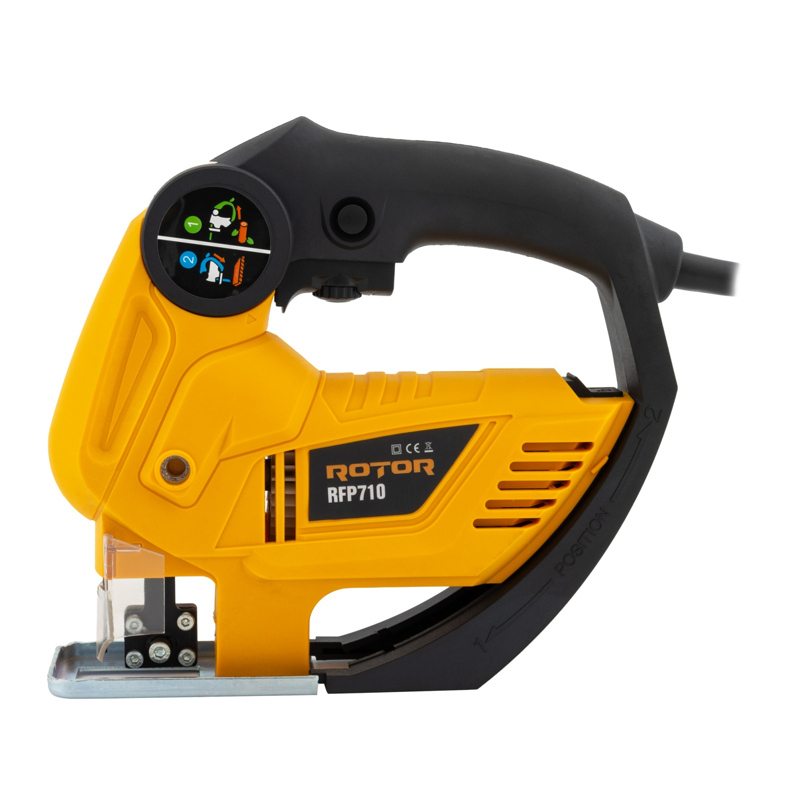 Ai nevoie de un fierăstrău versatil, care să facă atât tăieturi fine în lemn, cât și lucrări mai dure, precum debitarea de țevi sau panouri groase? ROTOR RFP710 îmbină două funcții esențiale într-un singur aparat: fierăstrău pendular și fierăstrău tip sabie, comutabil printr-o simplă rotire a cadrului semicircular. Acest sistem inteligent „Position 1/2” îți permite să treci instant între tăiere fină (mod pendulare) și tăiere agresivă/demolare (mod sabie), economisind spațiu în trusă și bani pe două scule separate.