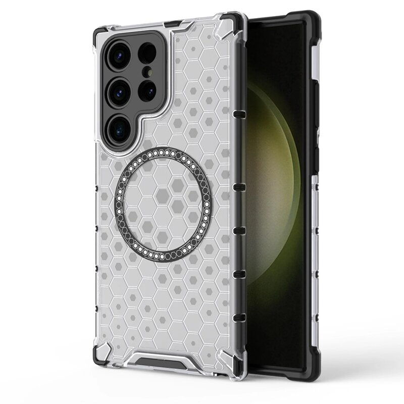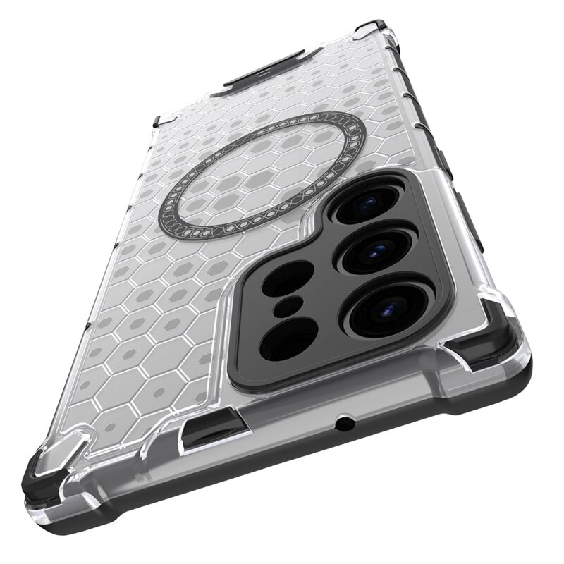Elementul central este perfect functional, transformand aceasta carcasa pentru Samsung Galaxy S24 Ultra intr-un produs compatibil cu toate accesoriile MagSafe.