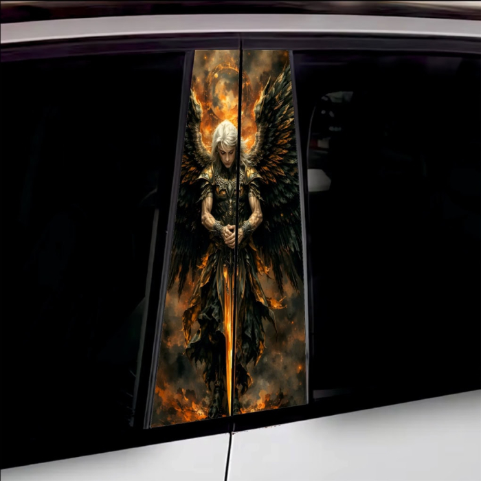 Set 2 folii printate outdoor pentru colantarea stâlpilor ușilor autoturismului dvs. Folia imprimată cu EcoSolvent Outdoor aderă pe orice suprafață plană, netedă. În cazul suprafețelor rugoase, aderența produsului va scadea considerabil.