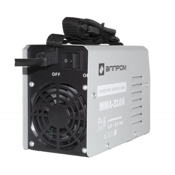 Invertor sudura MMA ELPROM 310A, 300Ah, diametru electrod 1.6 - 4 mm Invertor sudura Elprom 310A cu gabarit compact, usor de purtat intr-o gospodarie sau orice zona de lucru. Proiectat sa sudeze MMA, cu electrozi de la 1.6mm pana la 4mm astfel ingloband aproape toate nevoile de sudare pe langa casa sau intr-un atelier mic. Are o constructie simpla si eficienta conform tehnologiei tip invertor care consuma putin dar este capabil sa sudeze aproape orice material (afara de aluminiu pentru care este necesar curent alternativ). Componentele interioare sint bine ventilate datorita coolerului amplasat pe partea dorsala a aparatului de sudura si celor trei grile de aierisire. Tot aici gasiti si un inrerupator on/off. Setul include invertorul, clestii de masa si sudura si peria de zgura.